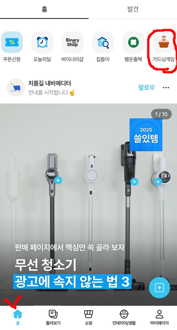 홈으로 가서 오른쪽 위쪽에 가드닝게임을 눌러주세요.
