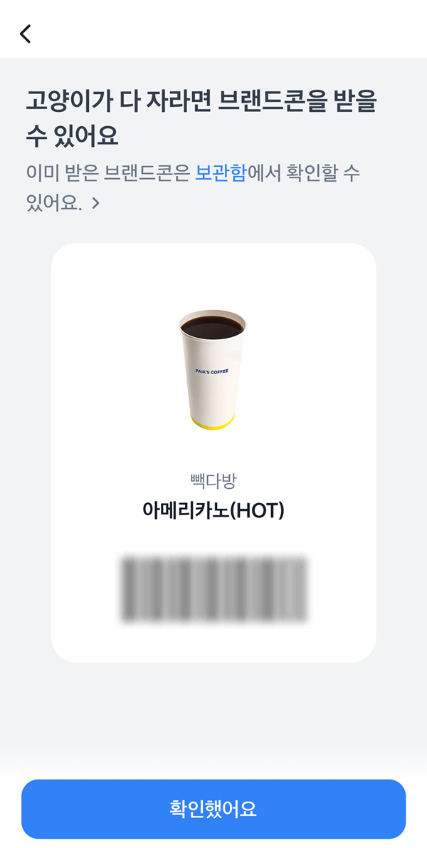 저는 빽다방 커피를 골랐는데, 시작할 때 고민 안 하고 아무거나 누르는 바람에...
