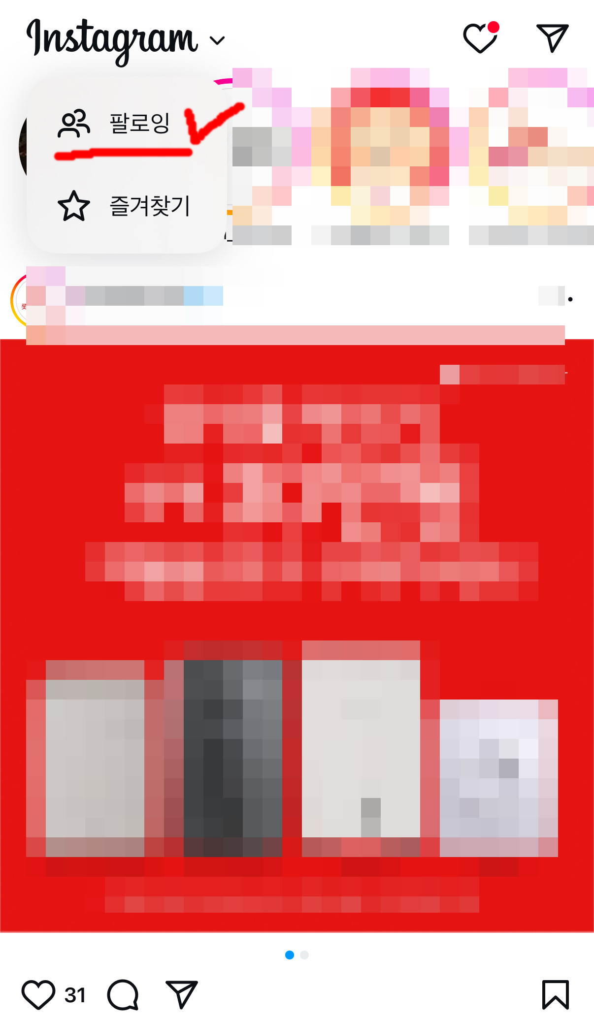 아주 간단하죠? 이렇게 하면 내가 팔로우한 계정의 게시물만 빠르게 볼 수 있어서 좋아요.